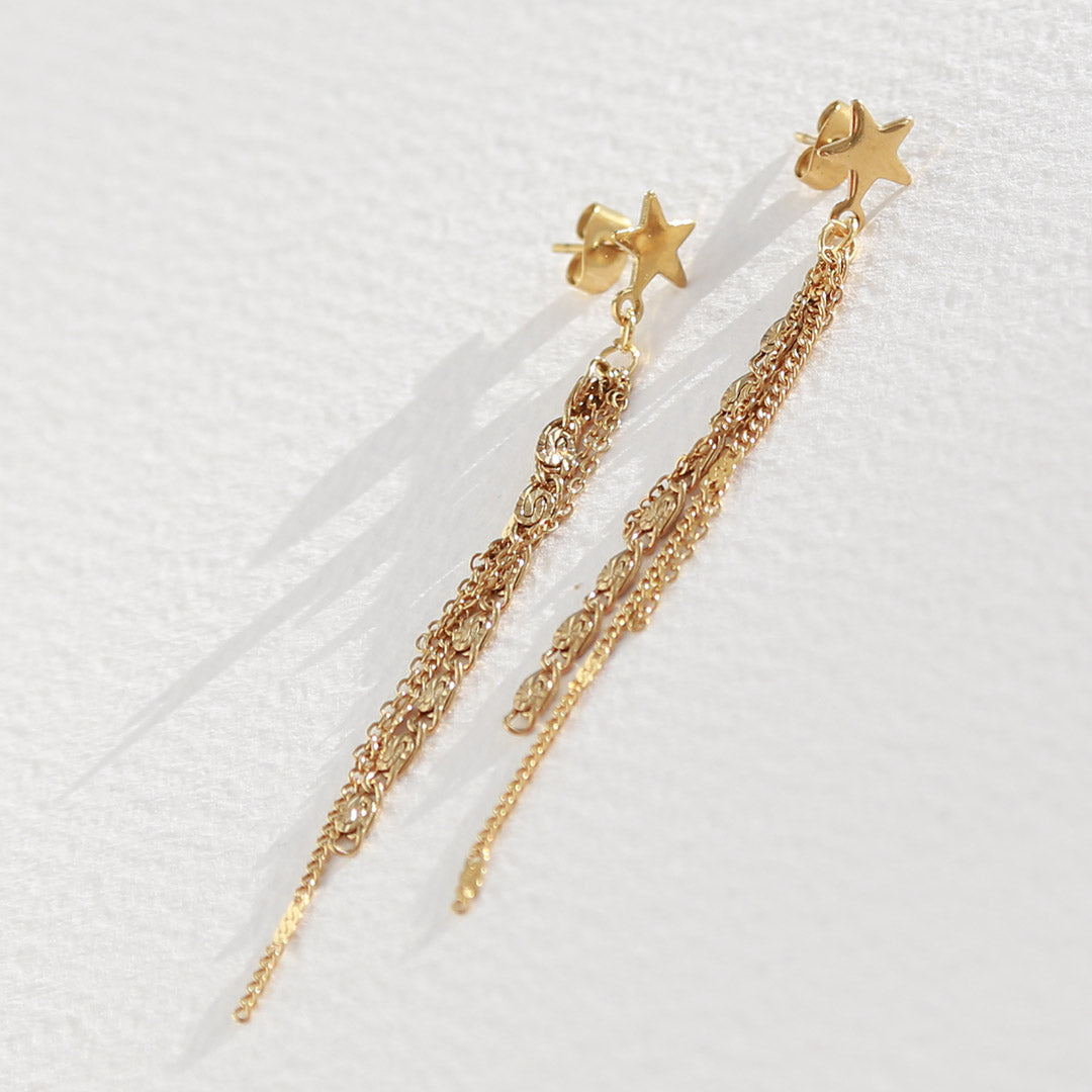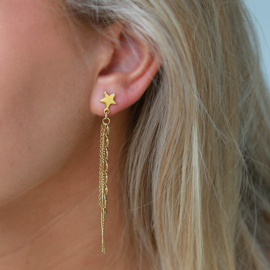 De perfecte oorbellen voor de feestdagen! Een leuk sterretje met verschillende lange schakels.