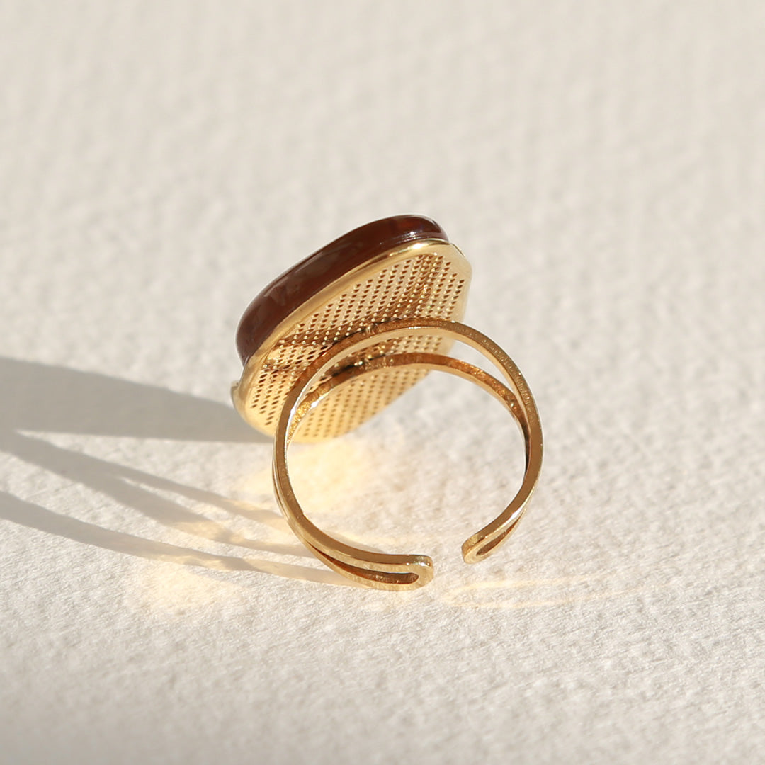 Ein wunderschöner, goldener Statement-Ring mit einem Stein. Der Ring lässt sich individuell an Ihre Größe anpassen.