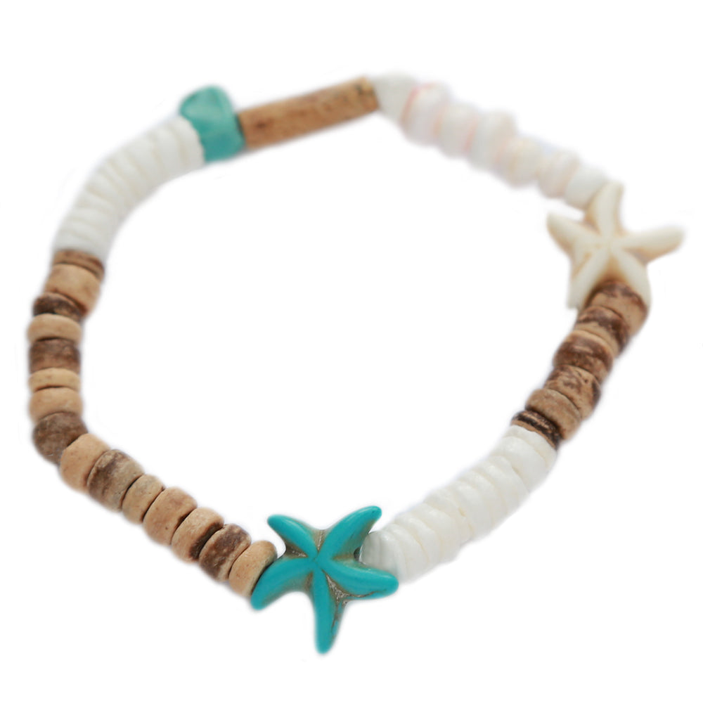 Schönes handgefertigtes Perlenarmband aus verschiedenen Perlen und einem Seestern-Anhänger.
