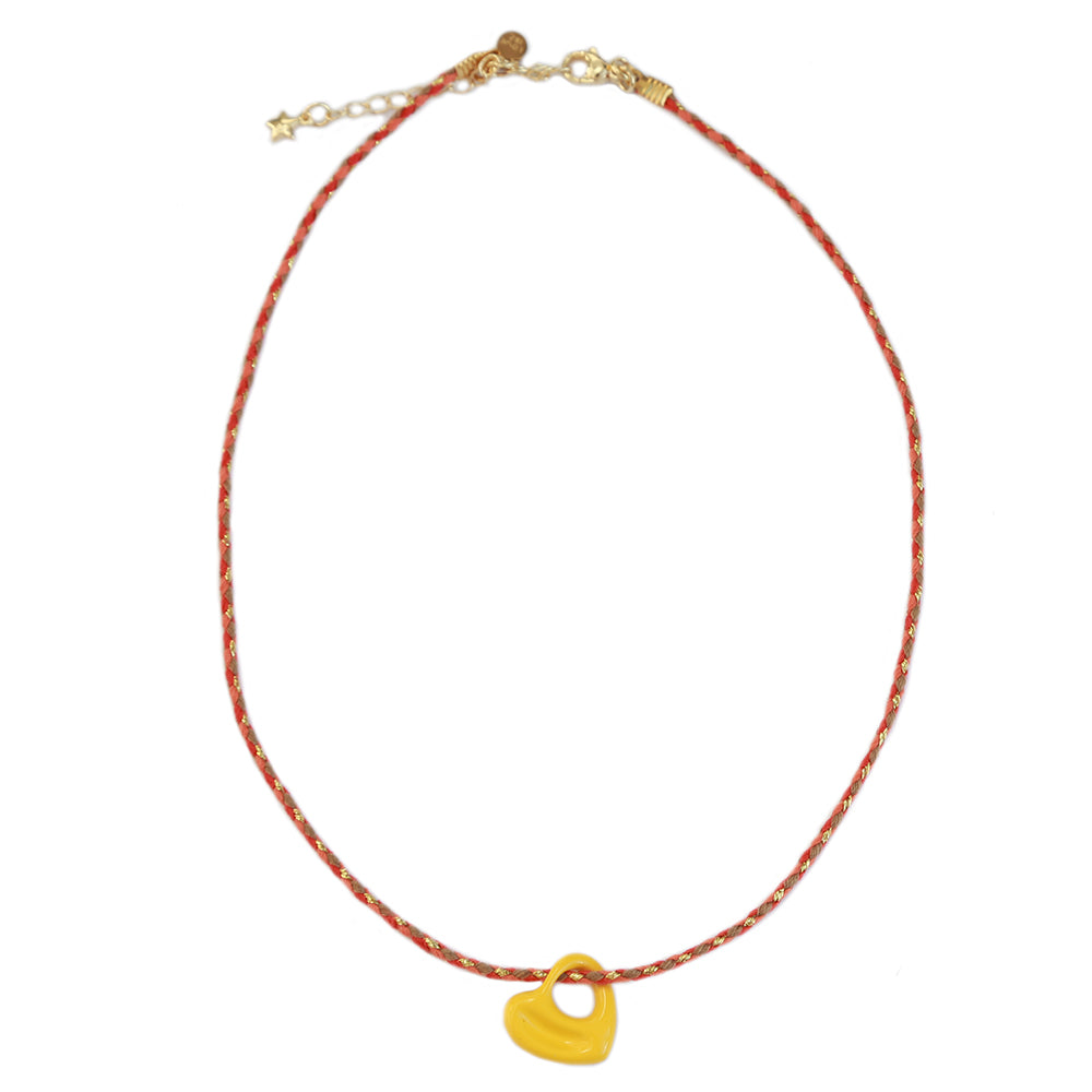 Nice necklace made of an autumn-colored cord and a small yellow heart charm!