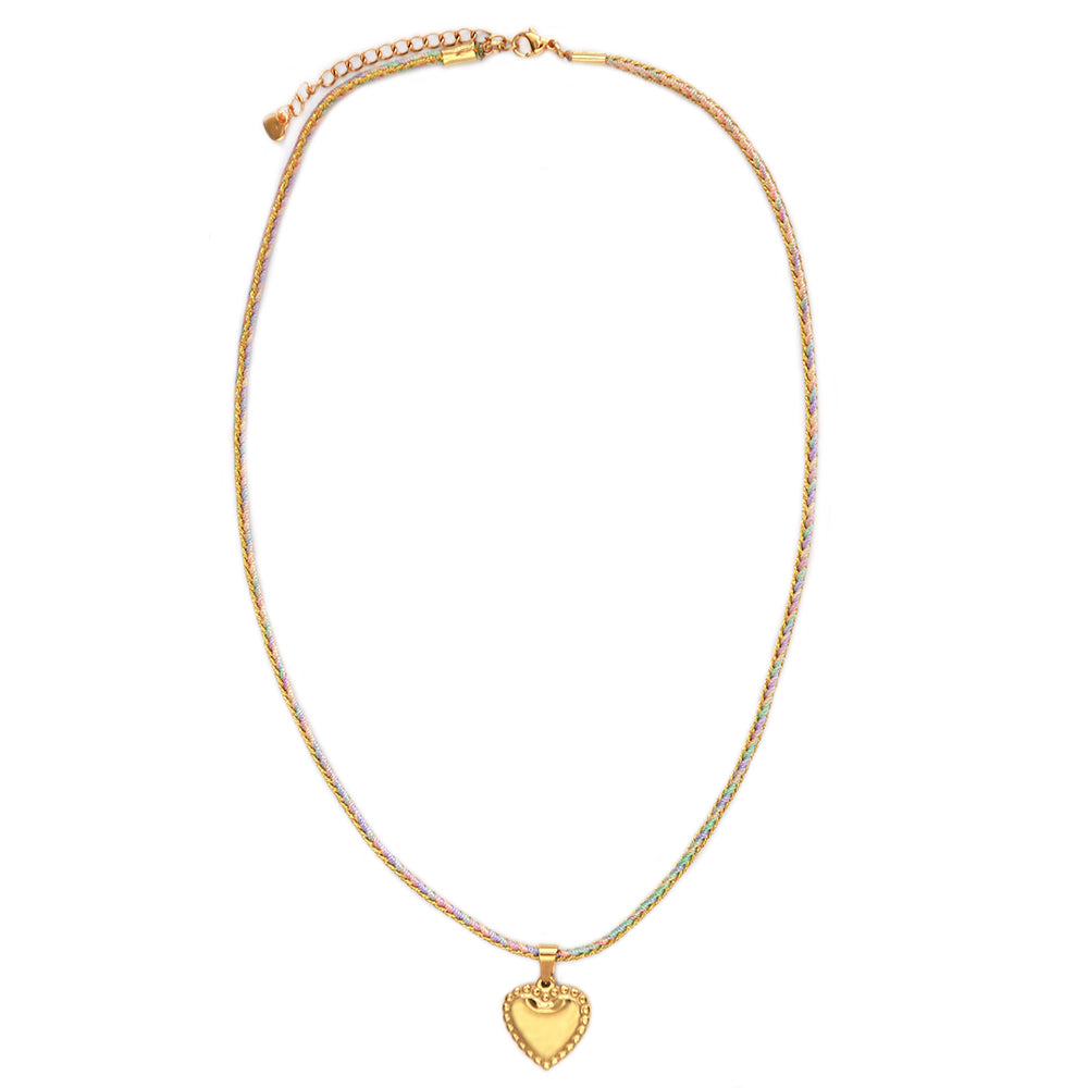 Nice necklace made of colored metallic cord and a golden heart.