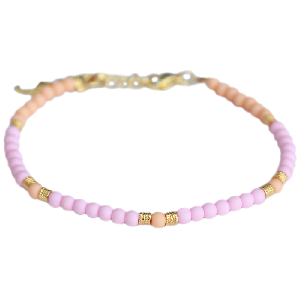 Beautiful ankle bracelet made of different colored beads alternating with gold details. The ankle bracelet is made of elastic and has a stainless steel extension chain!