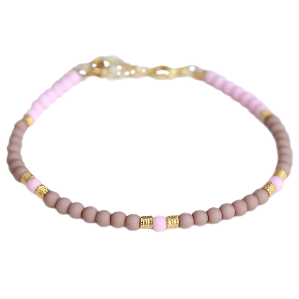 Beautiful anklet made of various colored beads interspersed with gold details. The anklet is made of elastic and features a stainless steel extension chain!