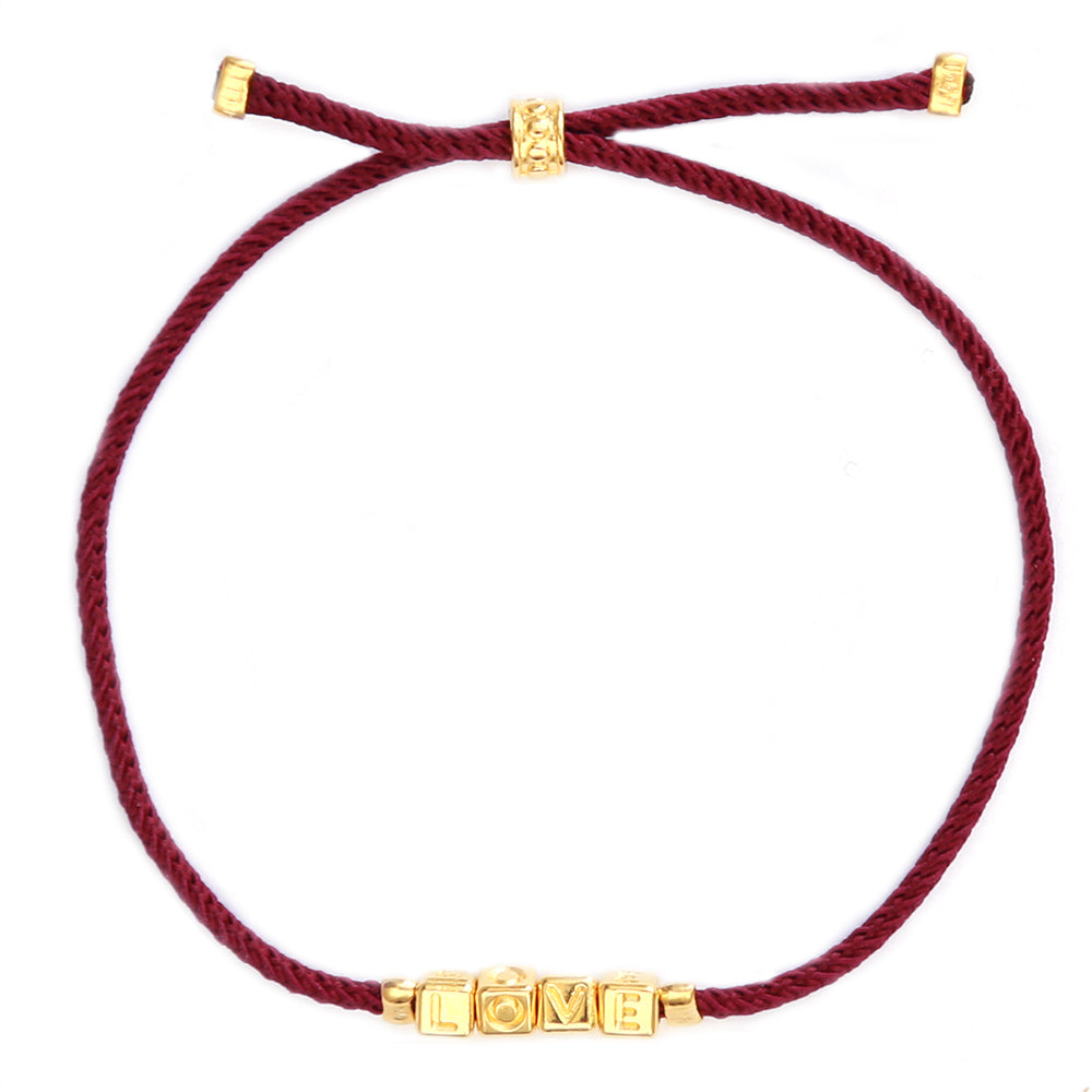 Nice handmade bracelet with golden LOVE charms and red cord.