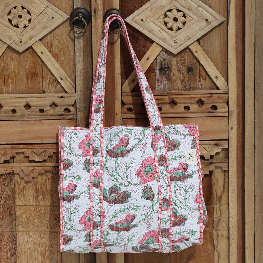 Deze kleurrijke blockprint schoudertas is gemaakt van organisch katoen en heeft aan de binnenkant ook nog een vakje! Deze tassen zijn met de hand bedrukt door middel van traditioneel Indiaas block printing methode met een verf van natuurlijke pigmenten.