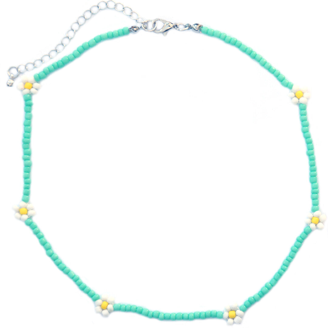 Oopsy daisy ❀ Super cute choker kettinkje van parelkraaltjes met madeliefjes.