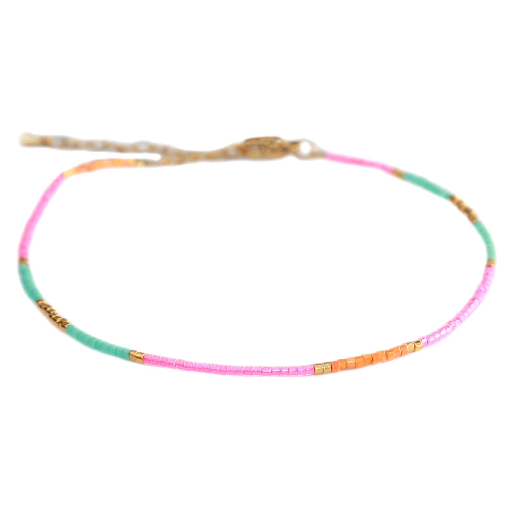 Mooi enkelbandje van fijne roze en mintkleurige miyuki kraaltjes.