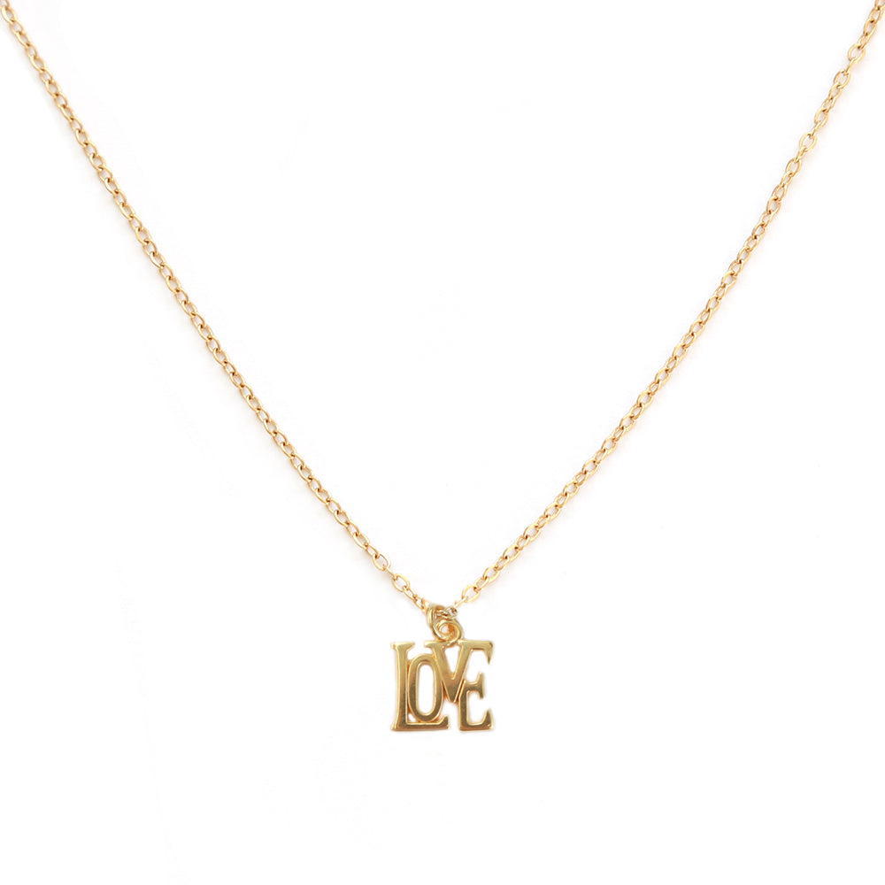 Leuke gouden ketting met het woord LOVE.  Materiaal: stainless steel  Lengte: 40 cm en 4 cm verlengketting