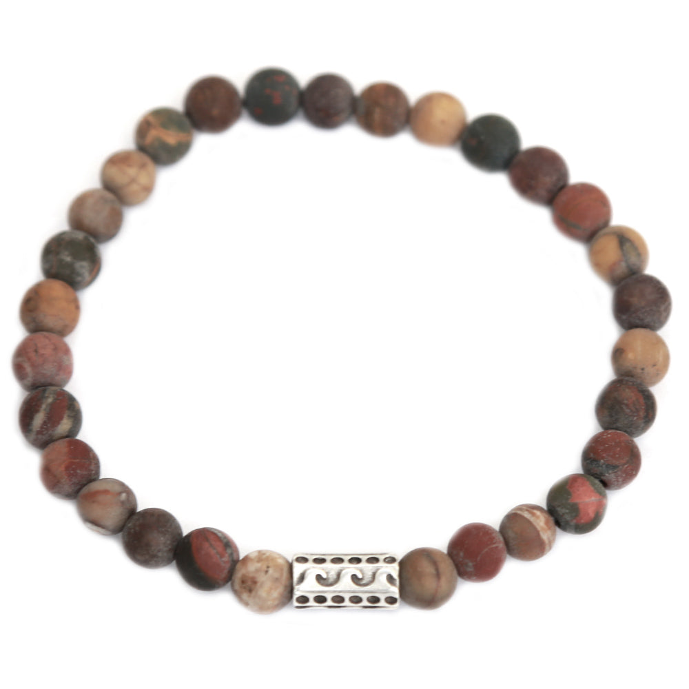 Leuke mannen armband van tigereye kralen en een zilveren bedel met golfjes.