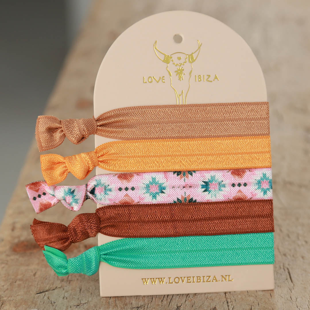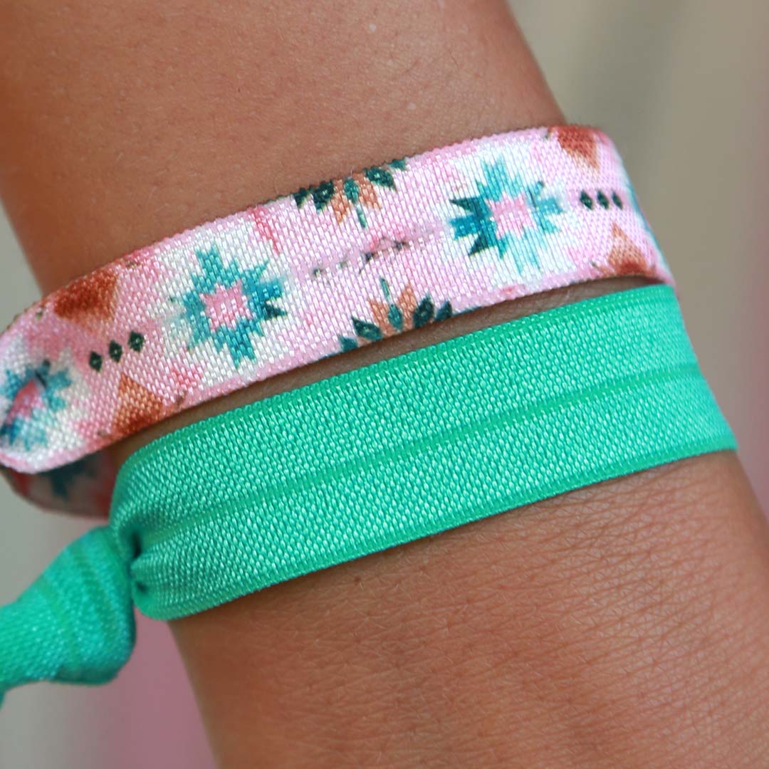 🌴 ¡Lleva las gomas para el pelo en el pelo o alrededor de la muñeca como una pulsera!