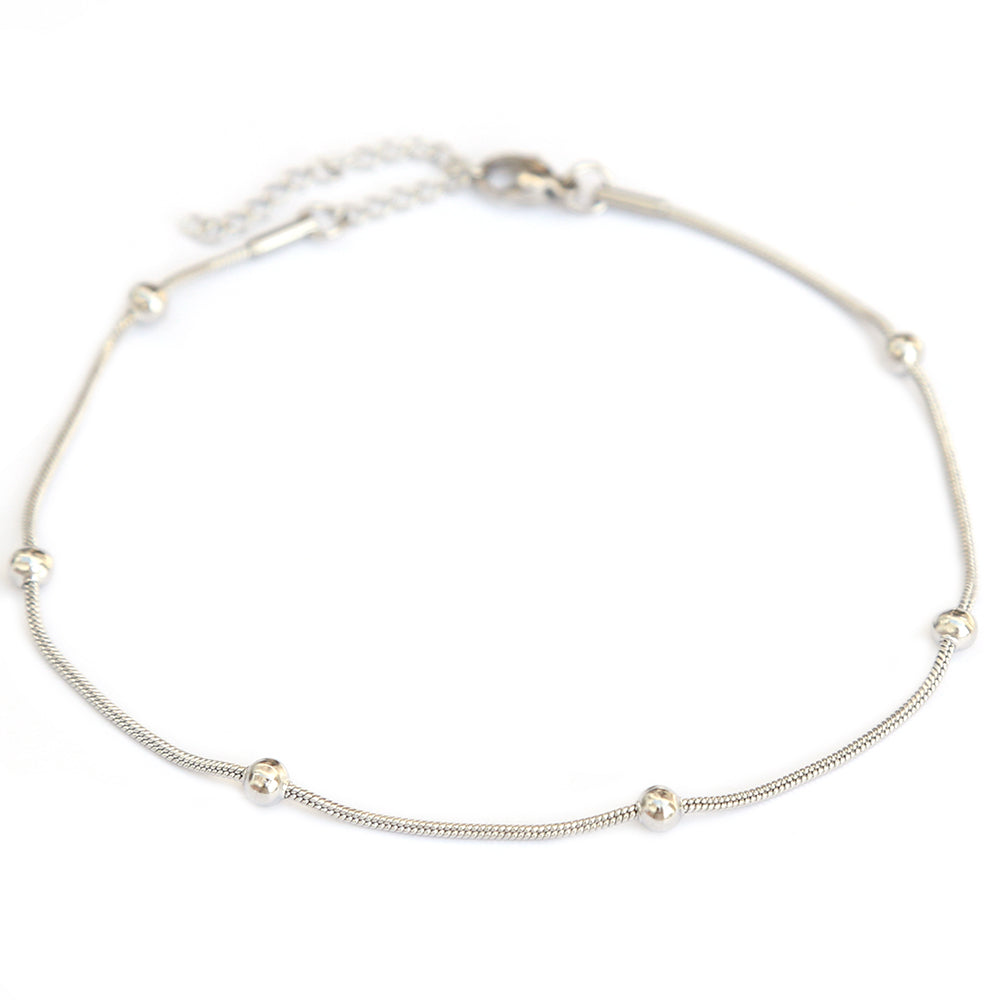¡Preciosa tobillera de plata con lunares plateados! Material: Acero inoxidable Medidas: 24 cm con cadena de extensión de 5 cm (largo total: 29 cm)